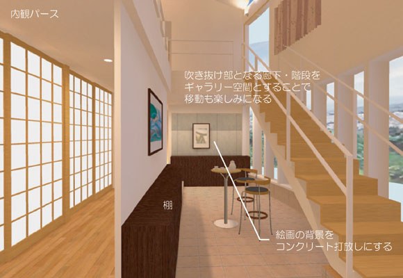 藤岡の家は両親世帯と同居した形式の二世帯住宅です。 お施主さんは絵画を収集していることもありそれを飾るためのギャラリースペースを階段吹き抜け部に 設けています。 敷地が自然豊かな赤城山麓をのぞむ場所であることから赤城山を眺める方向に建築の軸が向けられており 北側ギャラリーからは雄大な山並みが望めるように設計されています。